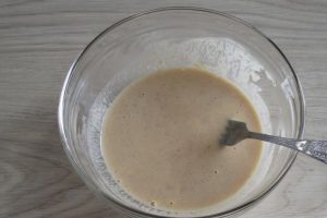 Разредете путер од кикиритки со вода сè додека не се конзистентни течните кисела павлака и истурете го во тавата. Покријте ја тавата со капак и вриејте ја содржината. додека месото целосно не се готви, мора да биде многу меко.