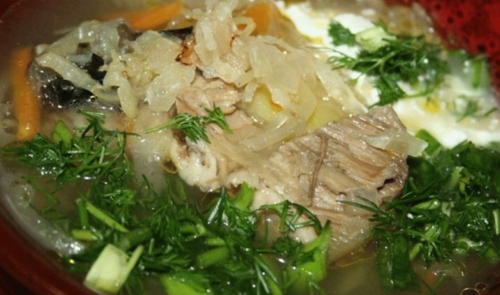 Една од најпознатите руски супа од зелка – по диема, ќе направиме понатаму свинска супа со сушени диви печурки и бурено кеale. Со густ богат вкус. Таква домашна зелка супа порано се подготвуваше само во зима.