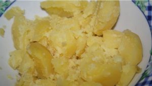 - Кога компирите се готват, треба да се пират со брадавица натаму различни парчиња. И вратете го.