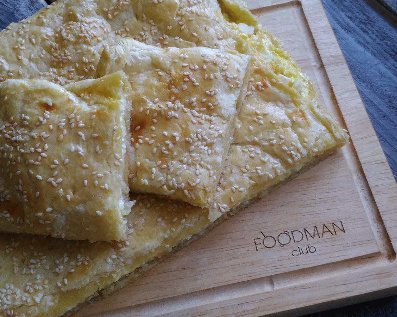 - Подмачкајте ја питата на врвот со претепано јајце и посипете со семе од сусам.