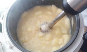 - Изладете ги зовриените јаболка и исецкајте ги со блендер.