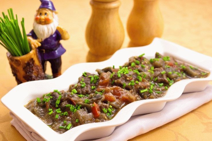 - Додадете модар патлиџан на коцки и чорба со капак дваесет минути, мешајќи.