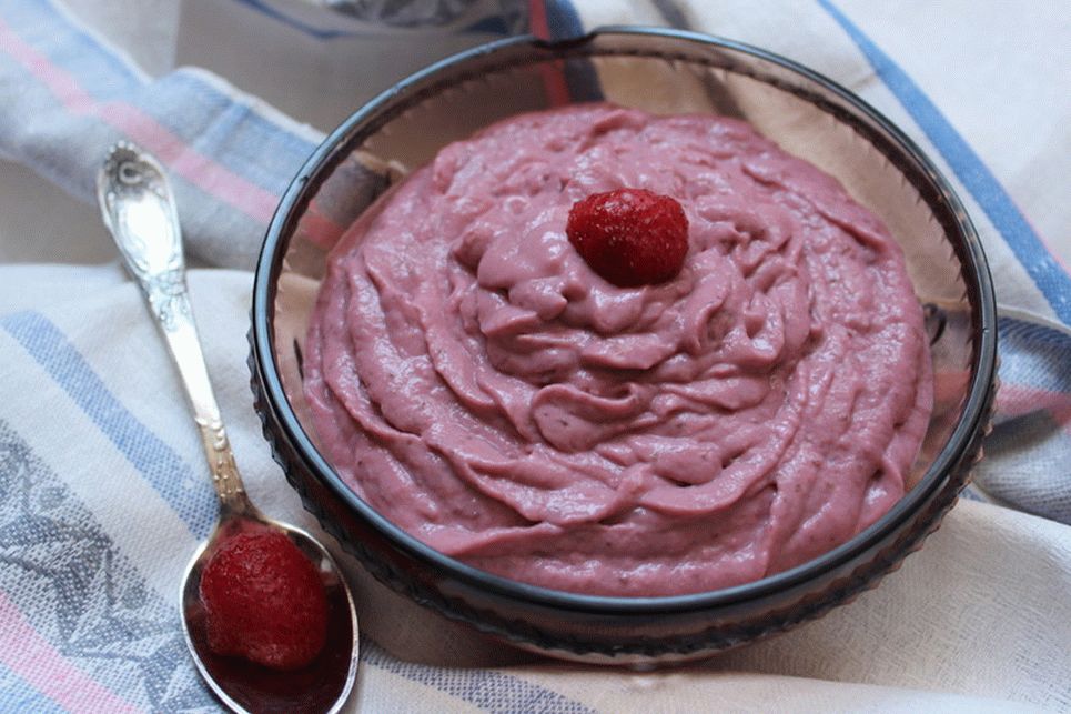 - Одмрзнете јагоди и комбинирајте ги со жолчки и шеќер, победи со мешалка во состојба на пире.