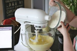 - Додадете ги јајцата еден по еден во путерот и шеќерот без да престанете размахване.