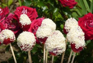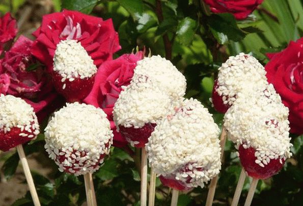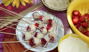- Секое Бери натопете го во јогурт и сусам, проследувајте skewer.