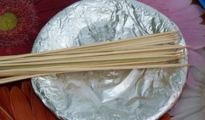 - Покријте го садот со фолија, варете дрвени skewers.
