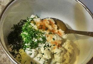 - Додадете сецкан копар и неколку капки сос од Табаско.