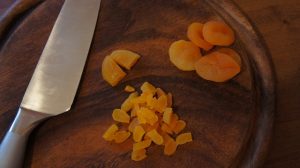 - Исплакнете ги кајсии и исечете ги на коцки.