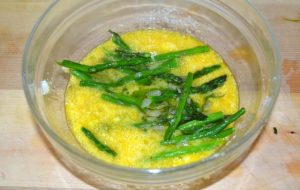 - Фрли кромид со аспарагус во смесата и измешајте.