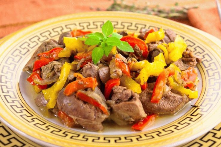 Идејата за принудна вечера – пилешки црн дроб со зеленчук. Црниот дроб излегува дека е многу вкусен и нежен, заситен со арома и вкус. сладок пипер. Подготвување сад дома е брзо и лесно, но за гарнир пире од компири или варен ориз од кружно зрно се погодни.