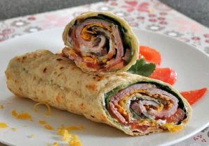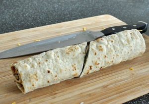 - Се тркалаат во ролна. Исечете на два дела под агол и сервирајте на масата.
