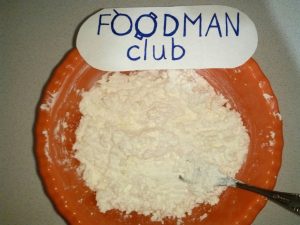 - Мелете ја урдата со блендер, додајте ја отечената гриз, шеќер, сол, ванилин шеќер, јајца и измешајте.