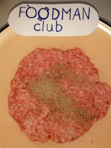 - Мелено месо, исто така, додадете сол и зачини (додајте по избор мелен кромид во мелница за месо). Замена